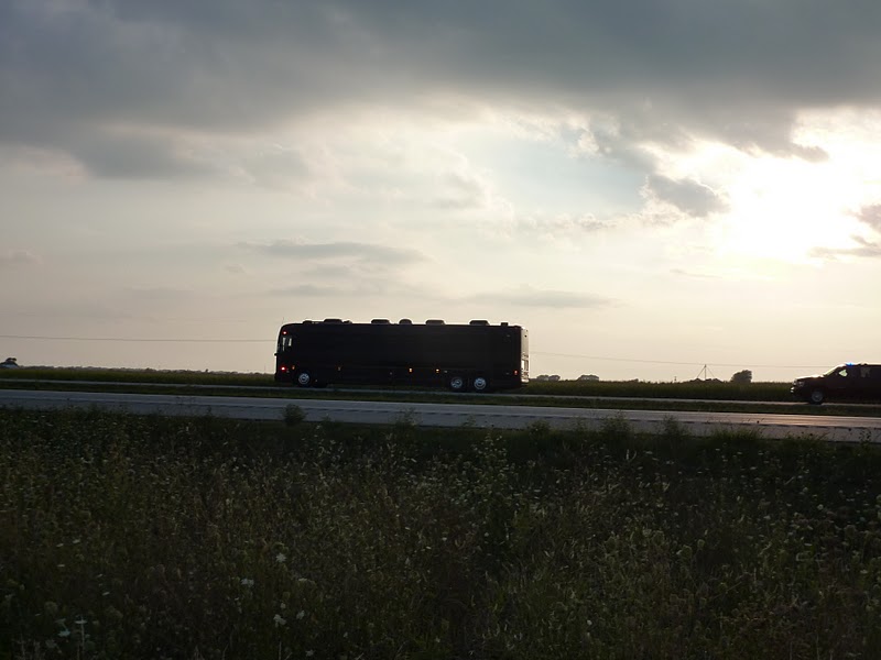 On August 17, 2011 President Barack Obama stopped for a town hall meeting in Alpha Illinois, just right up the road from us. We did not get to see him in person, but we tried to see what we could. Addysen was excited to go, since she had recently learned his name. Actually, that morning she made up a song and started singing it to me in the car, "Barack Obama to you, Barack Obama to you!" After driving around the countryside for a while, and getting denied access anywhere close to the interstate (where he would be traveling) we finally found a spot to stop at Kleine Equipment. Addysen and Aunt Mary took a couple of senior pictures with the tractors, the president motorcade drove by in all its glory and it was over. It was happened fast, but it was exciting to see the United States President in our 'neck of the woods!'